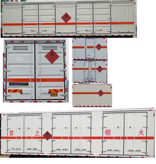 该车为危险品运输车,厢体选装平面和瓦楞板结构,选装侧开门型式及位置;选装后部样式.厢体侧面板选装开百叶窗.选装不同结构的液压升降尾板,选装液压尾板时收起状态的水平长度为300mm. |